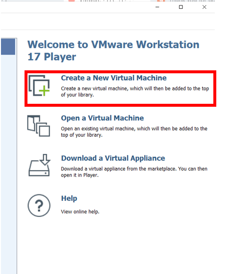 VMware Workstation을 실행한 후, 우측 상단의 'Create a New Virtual Machine'을 클릭합니다.