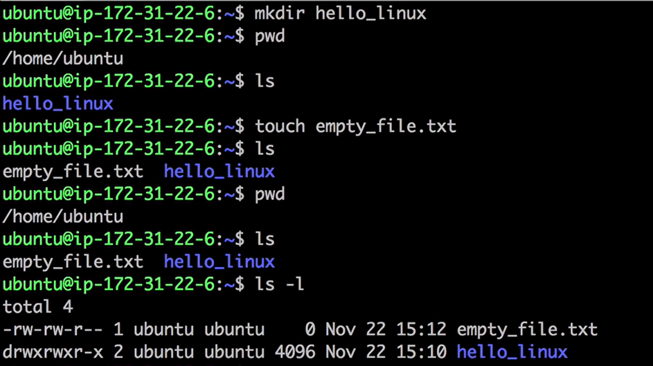 - mkdir (디렉토리 이름) : 디렉토리 생성 (make directory)