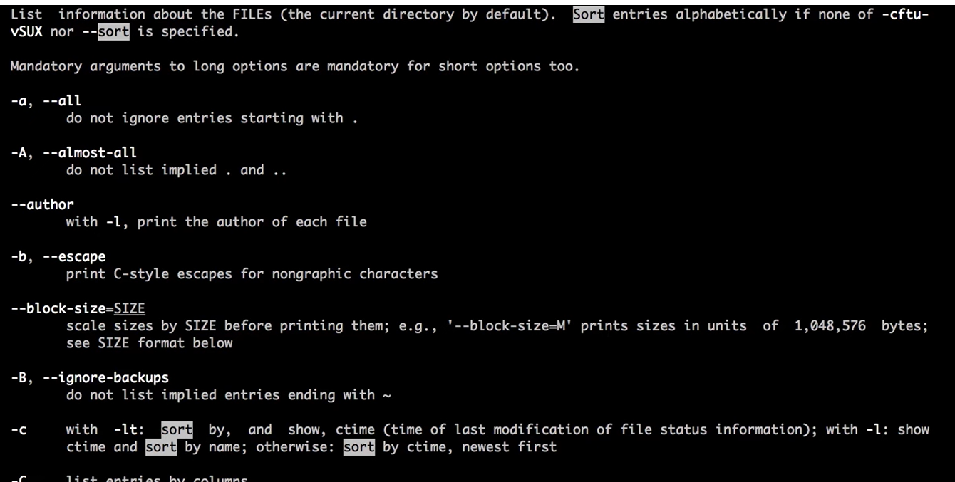 /sort + (enter) : sort 단어 포함된 메뉴얼 나옴, N키 누를 때마다 내려가면서 sort 찾아줌