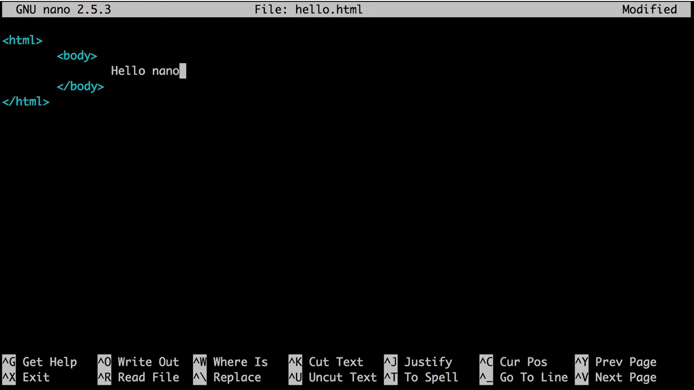 - nano (파일이름).html => html 편집 페이지 불러오기