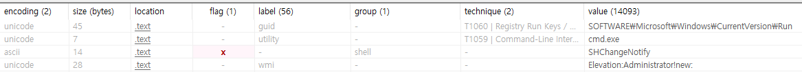 run 레지스트리 키를 설정할 것이라 예측할 수 있고, cmd를 이용한 행위를 수행할 것이라 예측할 수 있습니다.