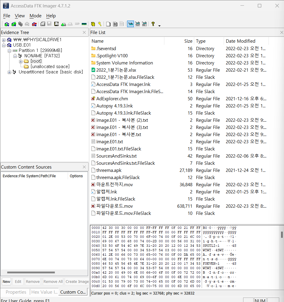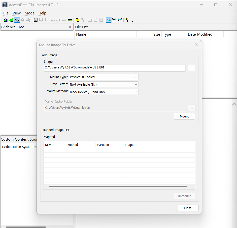 아래는 FTK Imager를 이용하여 디스크 마운트를 진행하는 과정이다.