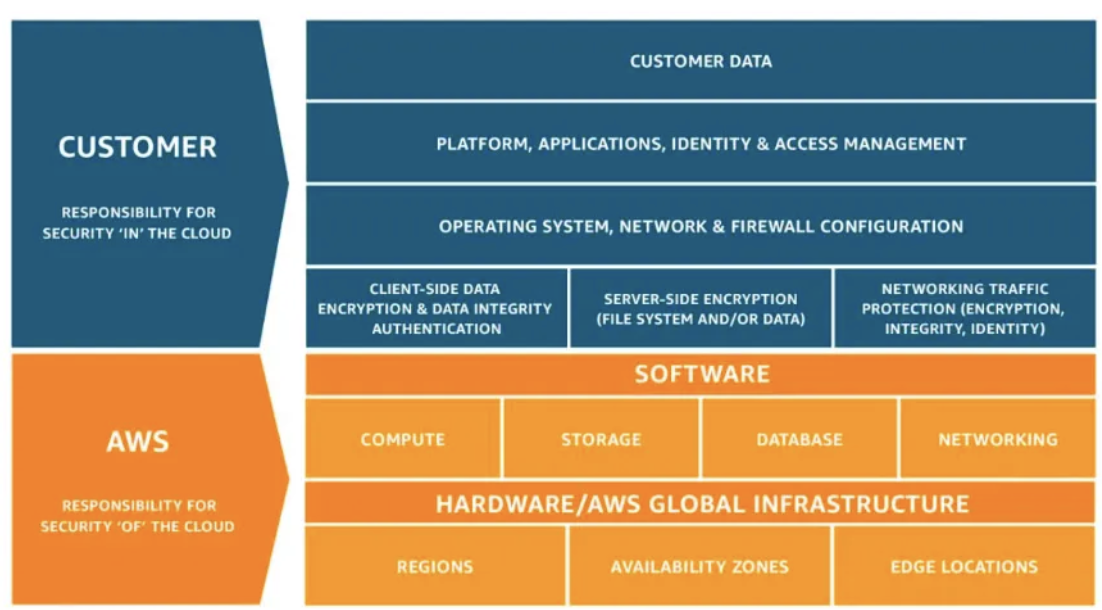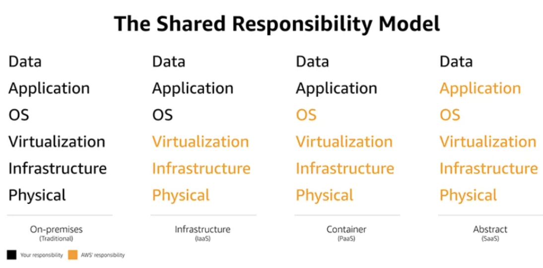 : AWS 같은 '클라우드 서비스 공급자'와 서비스를 제공 받는 '클라우드 사용자'가 IT 인프라에 대한 책임을 공유한다는 의미