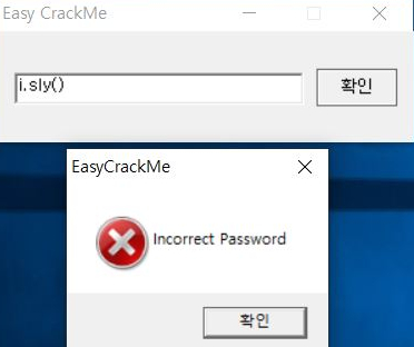 임의의 값을 넣으면 Incorrect Password라는 창이 뜨면서 프로그램이 종료된다.