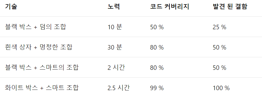 ☞ Black box일 때 30%의 결함 발견, 나머지는 white box fuzzing으로 결함이 발견되었다.