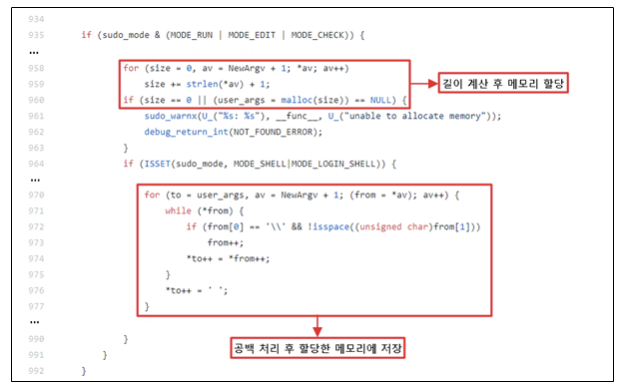 CVE-2021-3156 취약점은 parse_args.c 에서 입력받은 인자의 길이 계산 후 메모리를 할당하는 과정에서 나타남.