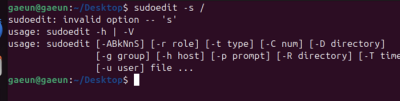 본인의 sudo가 취약한 버전인지 확인하는 방법은 아래와 같이 패치된 버전에서는 sudoedit -s / 입력시 usage: 오류가 출력됨.