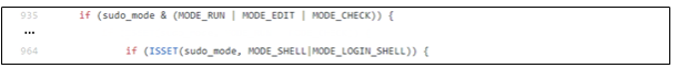 이를 해결하기 위해 sudo -e와 동일한 명령인 sudoedit을 사용. sudoedit은 valid_flags가 설정되지 않아 MODE_EDIT 설정 후 취약한 코드에 도달 가능함
