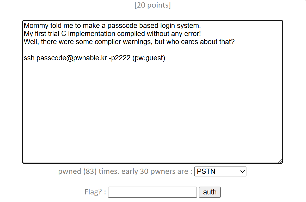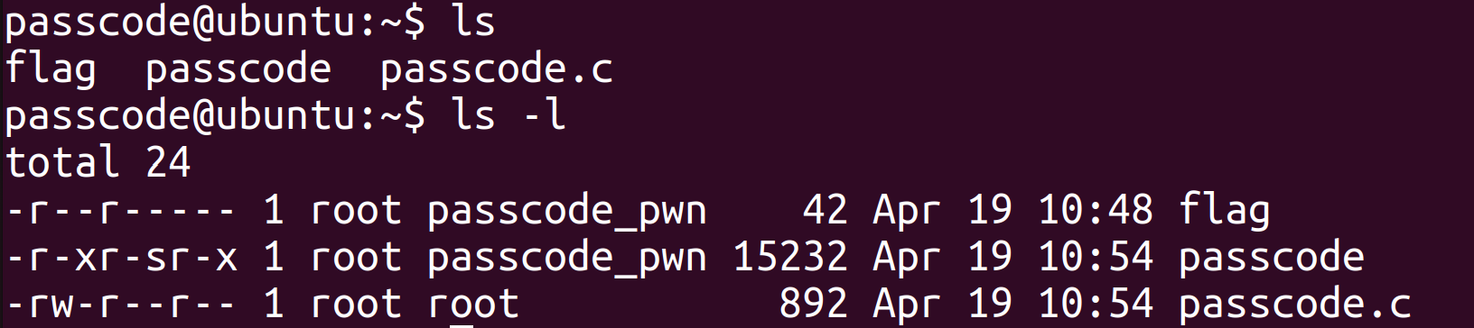(원래는 각 passcode의 주소에 scanf 값을 저장해야 함)