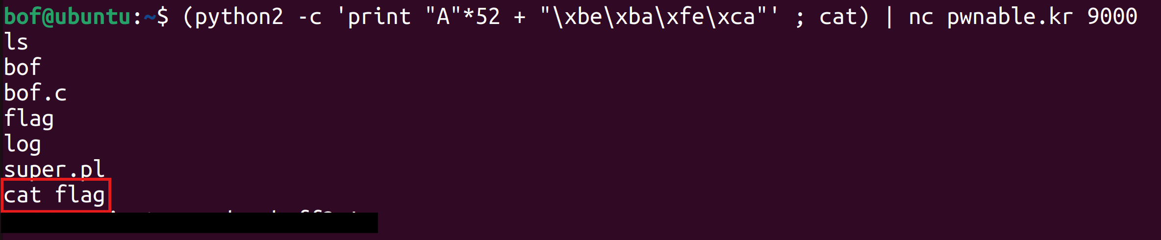 만약 fflush(stdin) 해당 코드를 flag값을 알 수 있는 system("/bin/cat flag") 코드로 바꾼다면