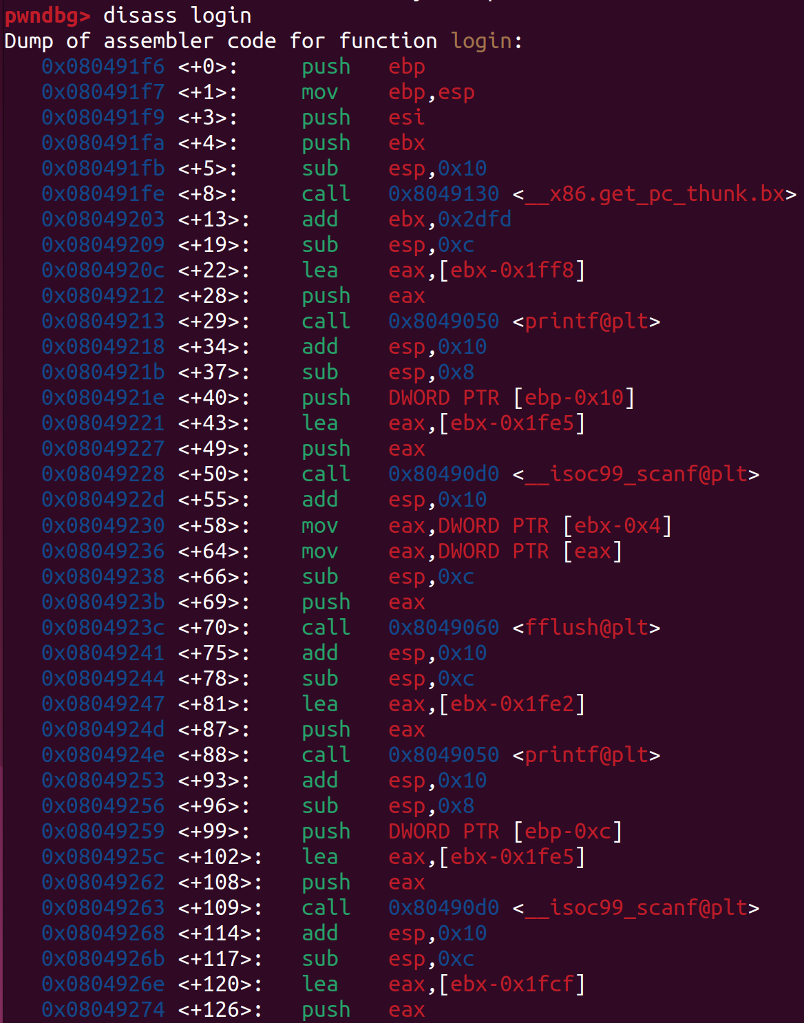 따라서 login 함수 실행 시 외부 함수들을 사용할때는 GOT 값 확인)