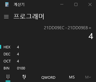 ∴ 20byte를 4byte씩 5번 나누어 res에 저장 = res에 20byte가 저장됨