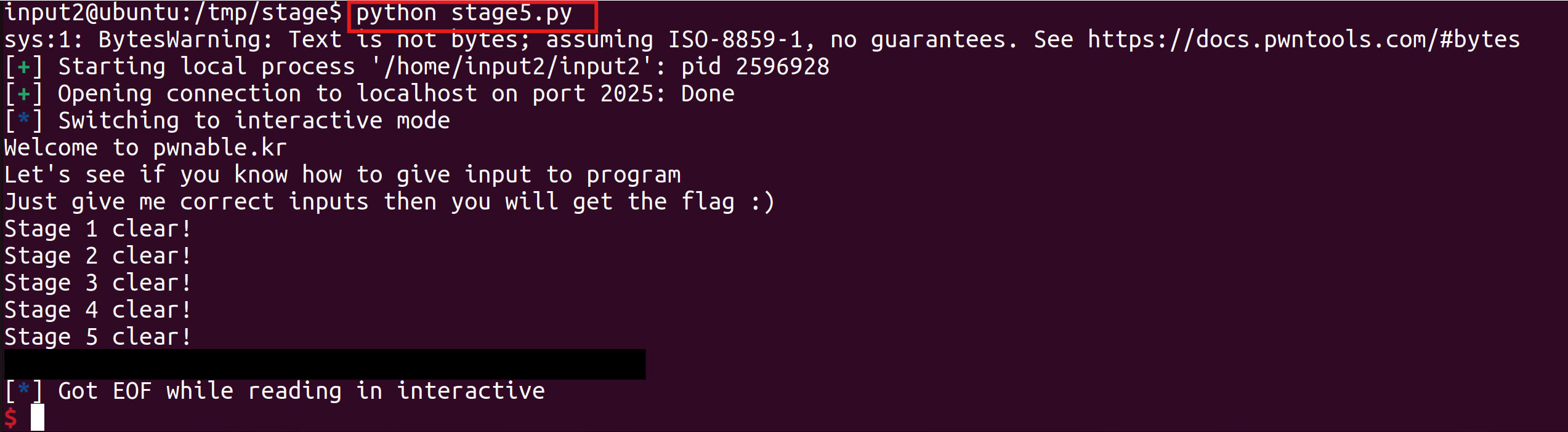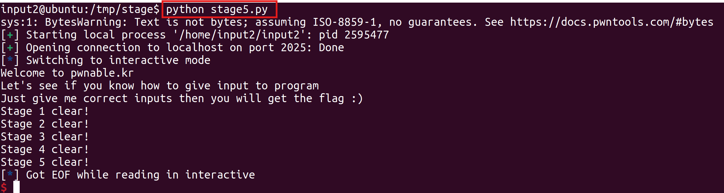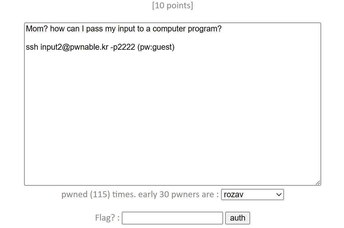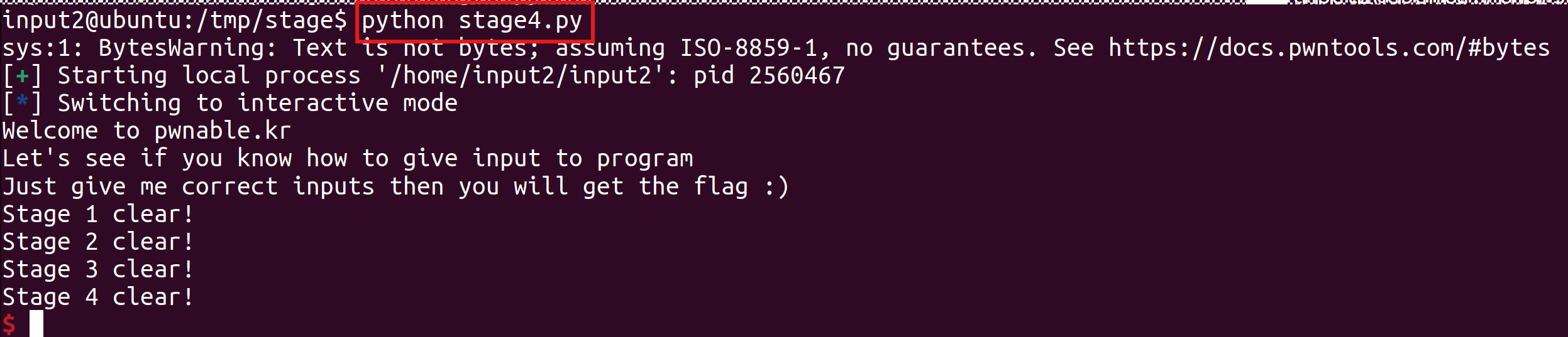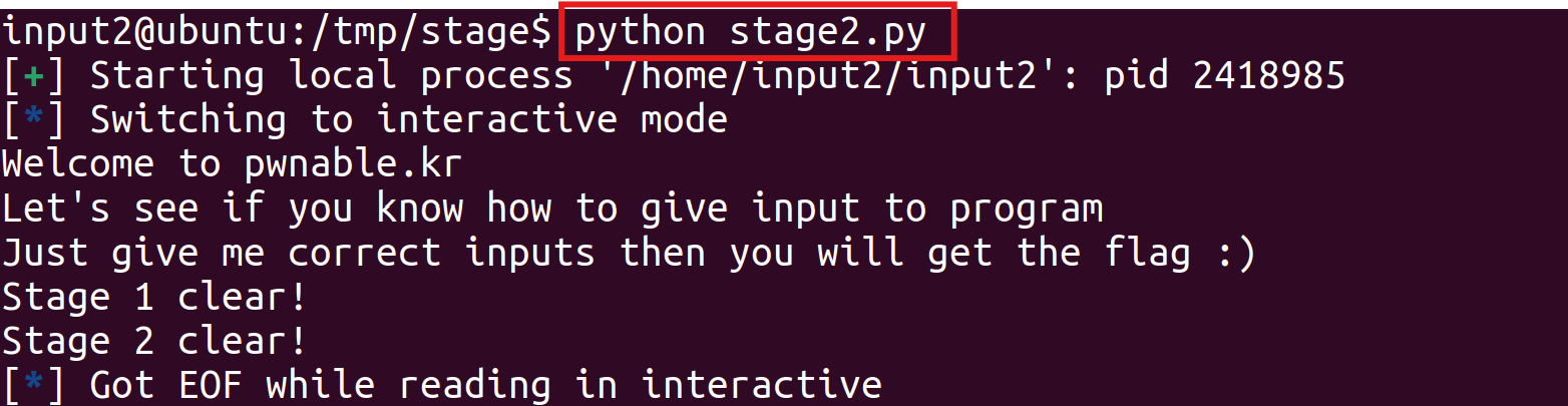 문제에서 제시한 ssh input2@pwnable.kr -p2222 로 접속 / pw 입력