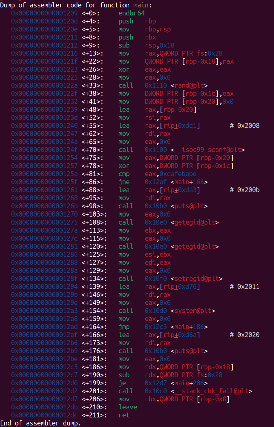 <main+38> 구간을 통해 rand 값이 [rbp-0x1c]에 저장됨을 알 수 있음