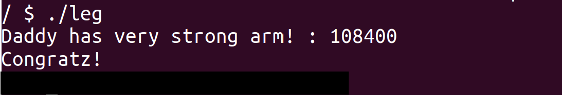 leg 파일을 실행해 해당 10진수 값을 입력하면 flag 획득 가능