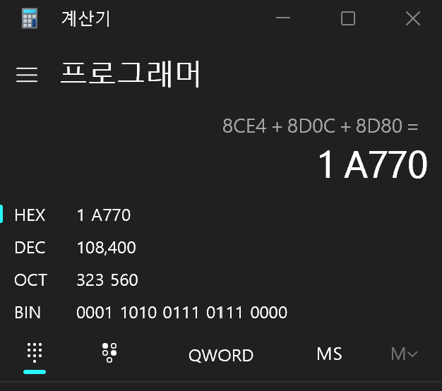 따라서 0x1A770의 10진수 값인 108400이 key값이 됨
