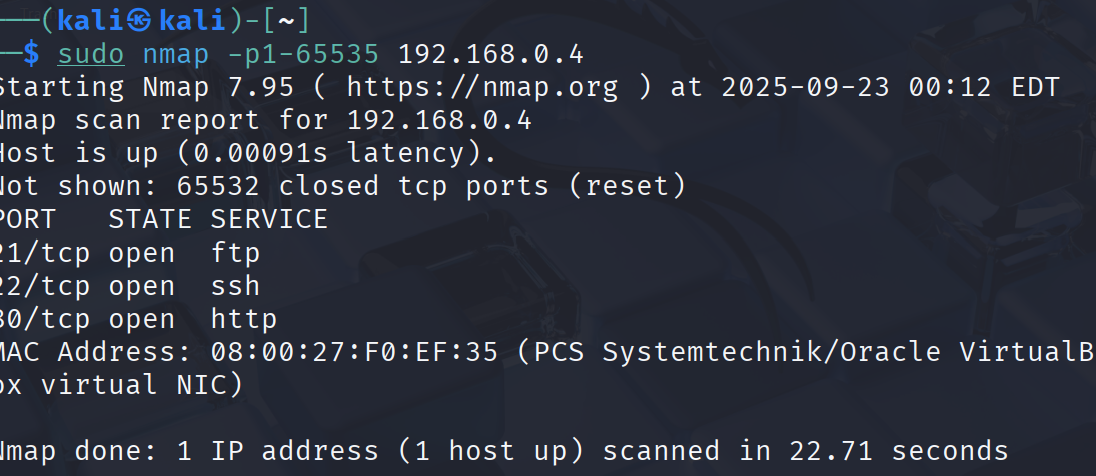 sudo nmap -p1-65535 192.168.0.4