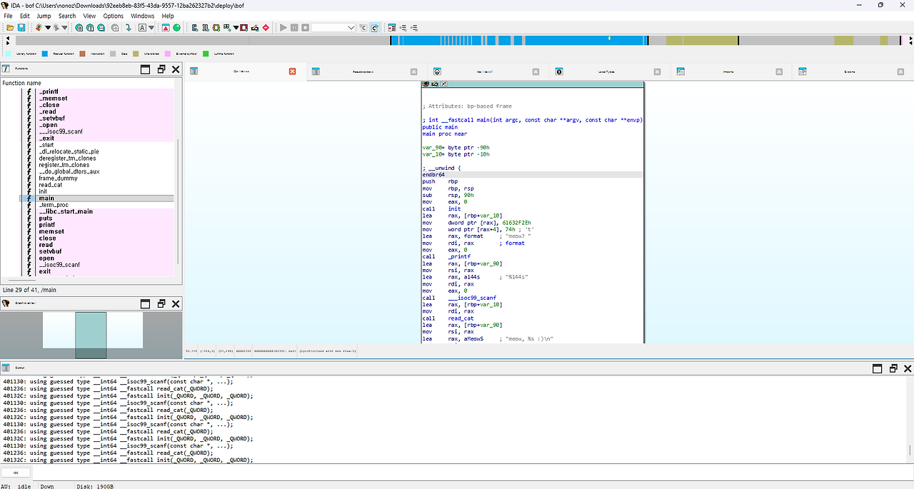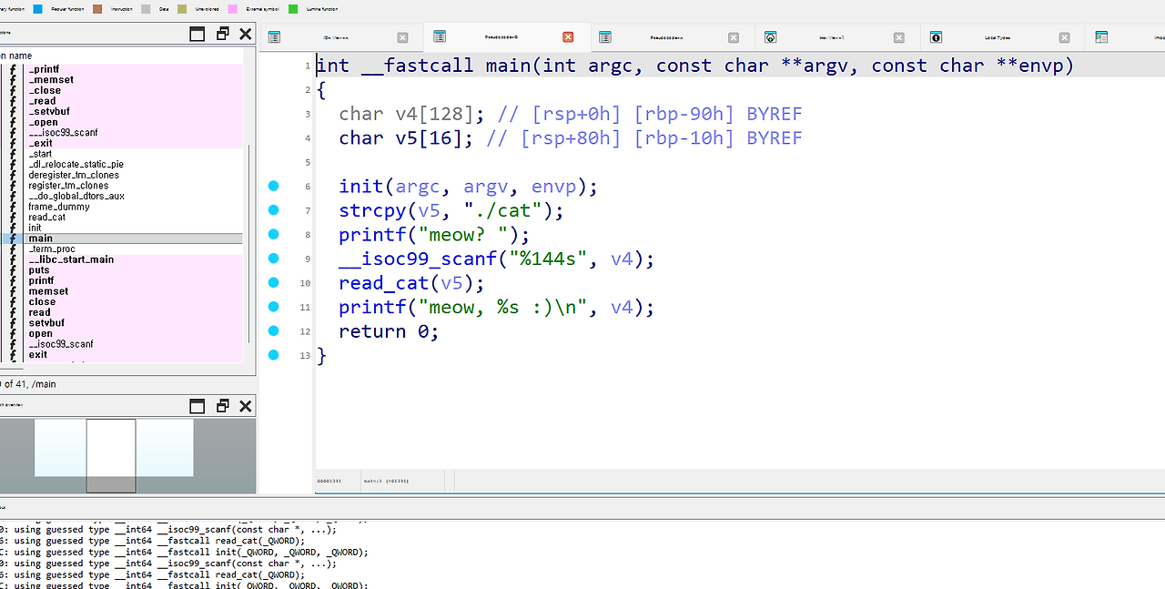 main함수인데, 사실 144바이트를 입력받는다는거 말곤 잘 모르겠음. c코드로 보자