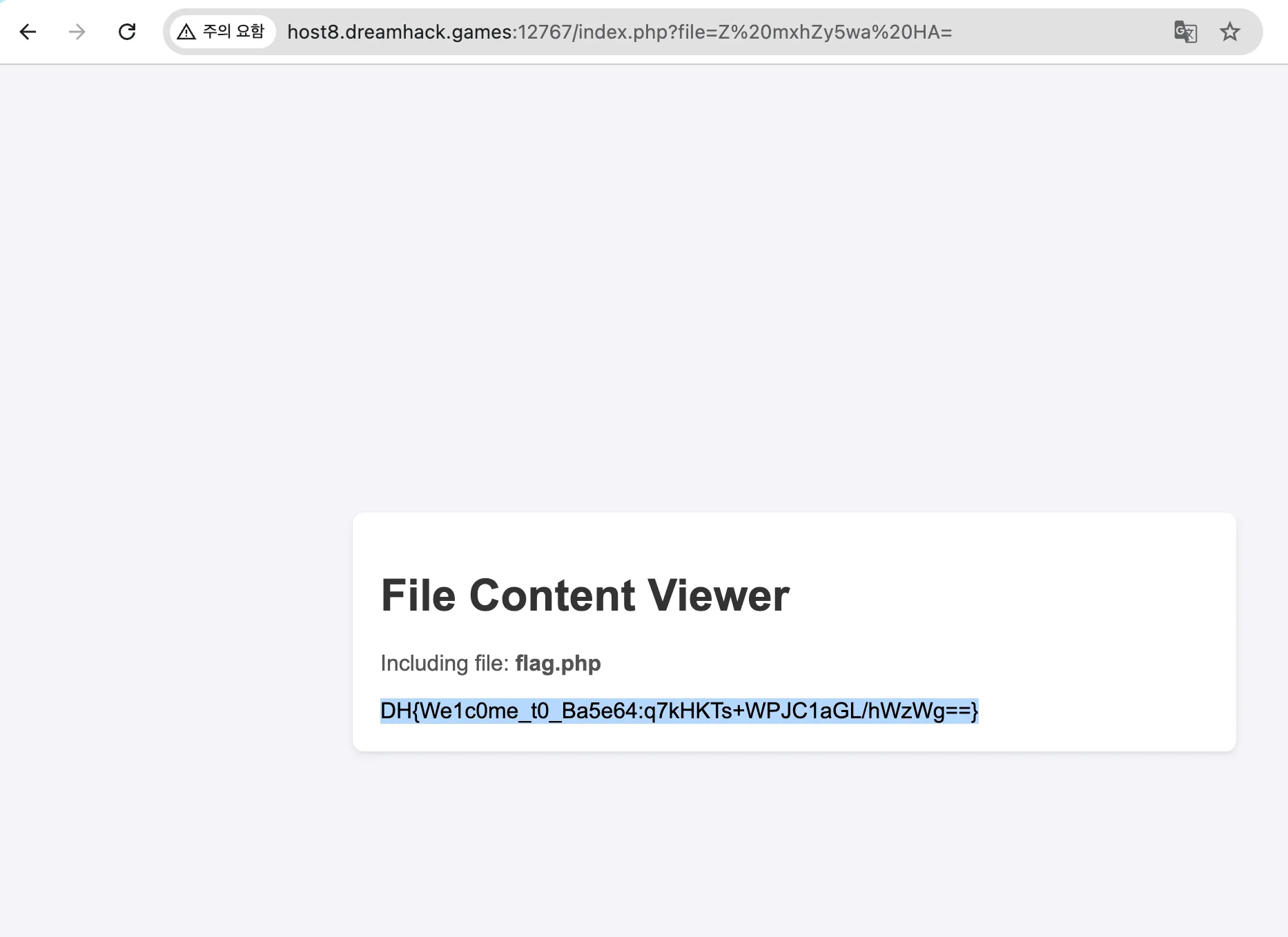 index.php?file=ZmxhZy5waHA= 와 같이 flag.php로 넘겨주면 필터링에 걸려서 출력되지 x