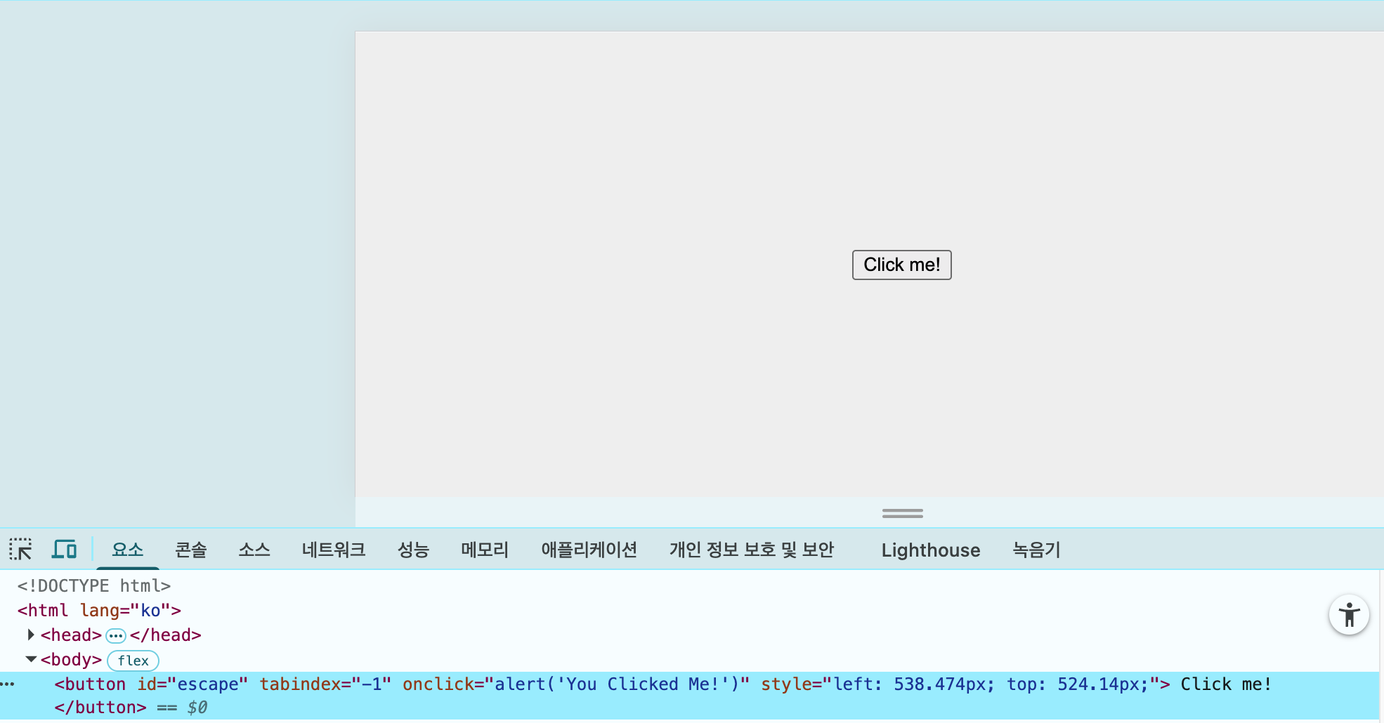 개발자도구로 확인해주니 escapeButton의 상태를 가져와 랜덤값으로 위치 시키는 것 같아서 button의 id를 바꿔줬다,
