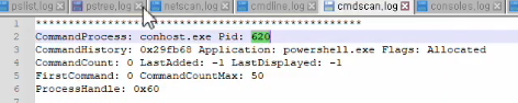 cmdscan log에서는 cmd 창에서 실행했을 때 나타날 수 있는 620 conhost를 염두에 두고 넘어갔다.