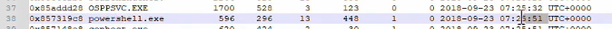 시간순으로 프로세스를 정렬해 주는 pstree에서 확인해 보면 OSPPSVC와 파워셸이 인접한 시간에 실행된 것을 알 수 있다.