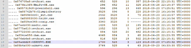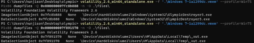 filescan log에서 OlympicDestroyer3 경로와 하위 실행 프로세스였던 _xut 경로를 추출해 준다