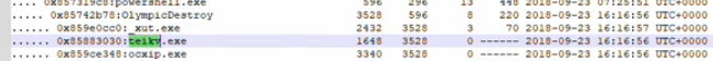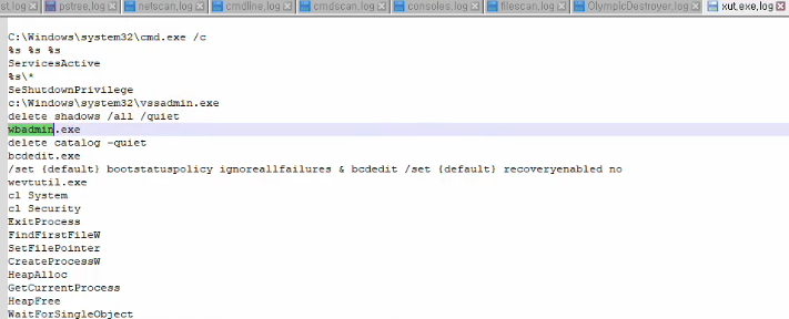 악성코드로 밝혀진 OlympicDestroy 프로세스와 하위 프로세스 string log 추출 진행