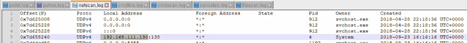 netscan log로 감염된 PC의 IP를 확인했다. IP: 192.168.111.130