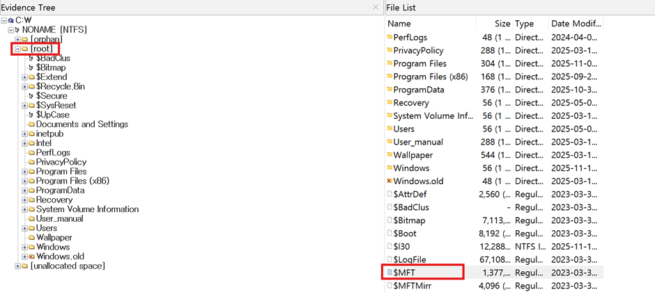 파일 선택 > 우클릭 > Export Files > MFT 폴더에 저장