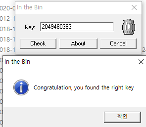 다시 10.exe를 실행시켜 키 값에 2049480383를 기입하여 성공 메시지를 출력한다.