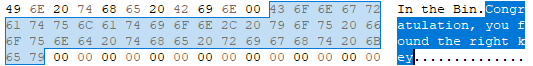 문제 출제 의도는 성공 메시지 출력이 아니라 key 값을 출력하는 것이므로 HxD로 성공 문자열 부분을 수정한다. 그리고 값을 넣을 때 16진수 아스키 코드로 넣어야 한다.