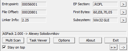 PEiD를 통해 10.exe를 실행시켜 ASPack으로 패킹 되어있음을 확인한다.