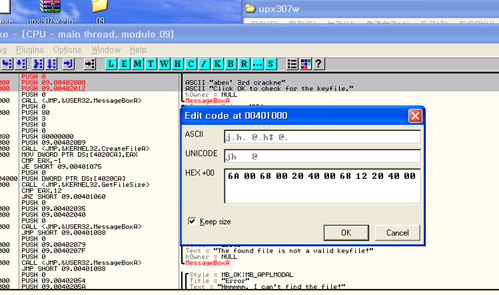 이때 성공메시지 대신 Key 값이 MessageBox에 출력 되도록 하려면 파일을 HexEdit로 오픈 한 다음 0x???? ~ 0x???? 영역에 Key 값을 overwrite 하면 된다.