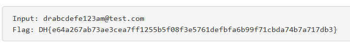위의 구조를 만족하는 drabcdefe123am@test.com 를 입력해보면 플래그가 출력된다