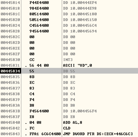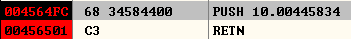 그렇게 하면 OEP 주소가 변경된다. OEP 주소는 445834이다. RETN을 통해 OEP 코드가 있는 곳으로 이동한다.