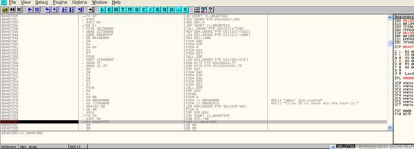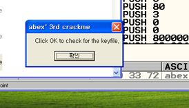 이때 성공메시지 대신 Key 값이 MessageBox에 출력 되도록 하려면 파일을 HexEdit로 오픈 한 다음 0x???? ~ 0x???? 영역에 Key 값을 overwrite 하면 된다.