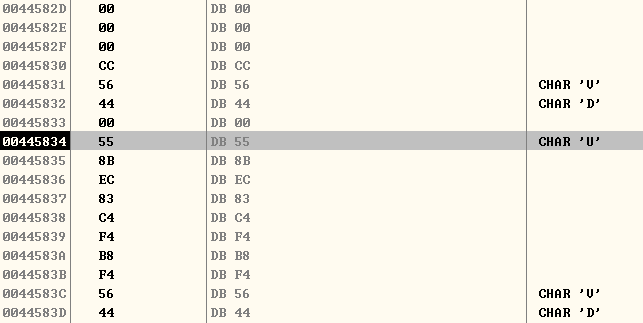 언패킹 진행 전 POPAD 명령 이후 PUSH 되는 값에서 ctrl+E를 이용해 OPCODE 확인.