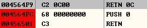 [Ctrl]+[F]키를 통해 ‘retn 0c’를 검색하여 밑에 있는 두 줄에 브레이크 포인트를 걸고 실행한다.