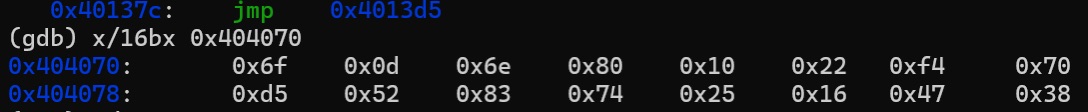 그래서 0x404070 값을 확인해보면, 프로그램이 내 입력을 변환한 뒤 이 값과 똑같아져야 한다는 기준값이라는 걸 알 수 있다.