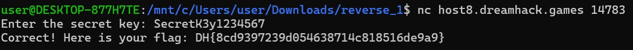 서버에 진짜 flag가 있으니까 위에서 구한 값을 서버에 입력해서 flag를 얻는다.