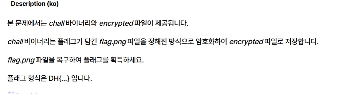 문제를 보면 암호화 방식은 chall 안에 있다는 것을 알 수 있다. 또 문제 구조를 보면 바이트 단위 반복 루프임을 알 수 있다.