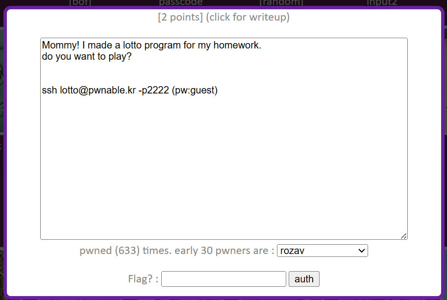 pwnable.kr [lotto] 문제풀이