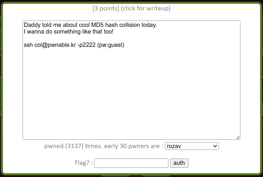 1. cgywin에서 ssh col@pwnable.kr -p2222을 치고 pw인 guest를 쳐서 문제 푸는 환경을 만들어준다.