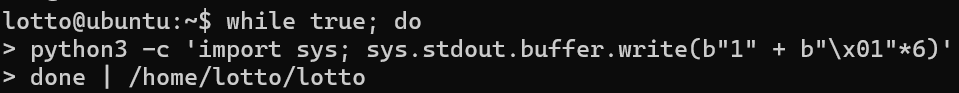 이를 반복적으로 전송하면, 로또 숫자 중 하나가 1이 되는 순간 flag를 획득할 수 있다.