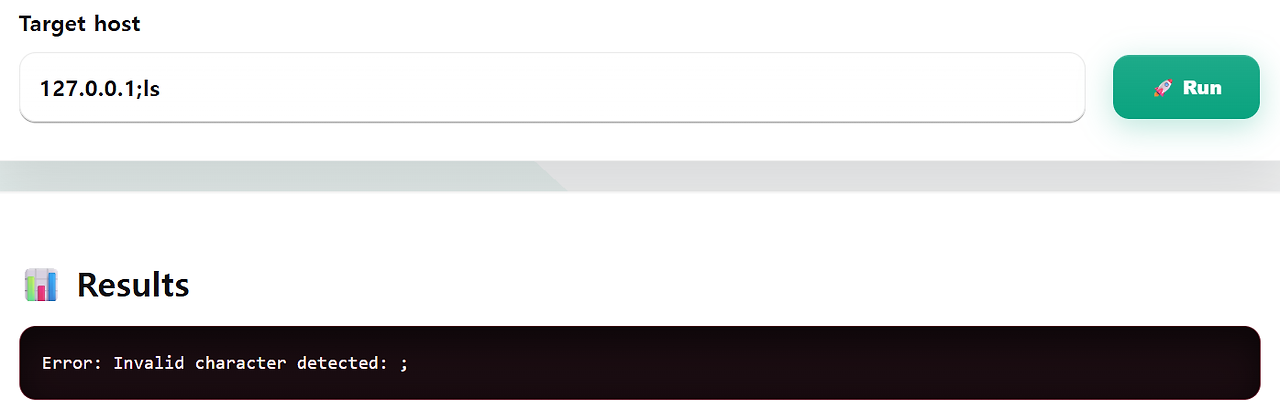 쉘일 가능성은 있지만 ;가 막힌다. 비슷하게 계속 시도하다 보면 공백, |, &, { 등도 막히는 것을 알 수 있다.