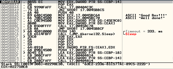 함수 실행 중 45B898 부근에 몇 가지 연산이 있었는데, 연산 후에 EDX에는 63E2EBF0가 저장되어 있었다.