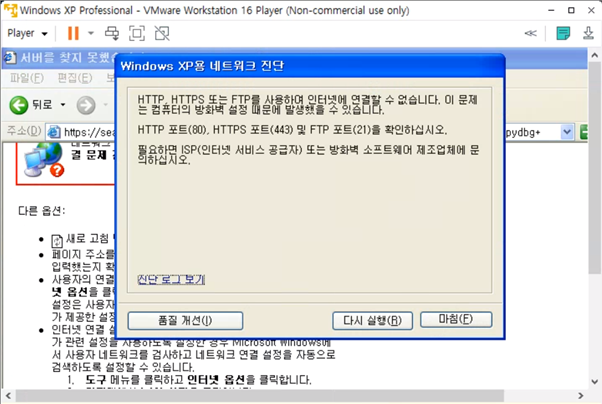 xp버전의 경우 네트워크 오류 발생으로 작동이 되지 않았다.